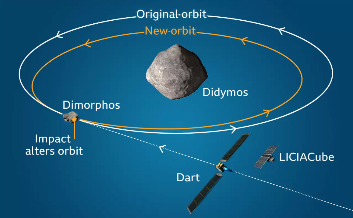 The goal of the DART mission was to slam a refrigerator-sized spacecraft into Dimorphos, a 530-foot asteroid orbiting the much larger asteroid Didymos, in the hope of shifting its orbit.