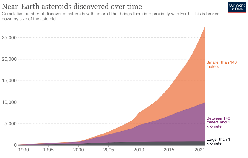 In 2005, Congress directed the program to identify at least 90% of the predicted number of NEOs larger than 460 feet wide — the size a space rock would need to be to wipe out a city — but as of June 2021, only 40% of the estimated number of large NEOs had been identified.
