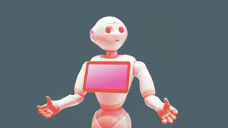 Pepper is a genderless, chatty, child-like humanoid robot already on the market. With a price tag of less than $2,000, Pepper is the first social humanoid robot to hit the mass market. Despite being technically genderless, the press and even Pepper’s creators refer to the robot as “he.” I will too. He’s short, made of shiny white plastic, and rolls on wheels. He has big black eyes that flash with blue light. He is designed to resemble a child and was created to become a member of the family. Pepper recognizes a range of emotions—from joy to sadness, anger to surprise—and adapts his behavior to the mood of humans around him. He comes with a three-year warranty, and the buyer must sign a user contract promising not to use Pepper “for the purpose of sexual or indecent behavior.”